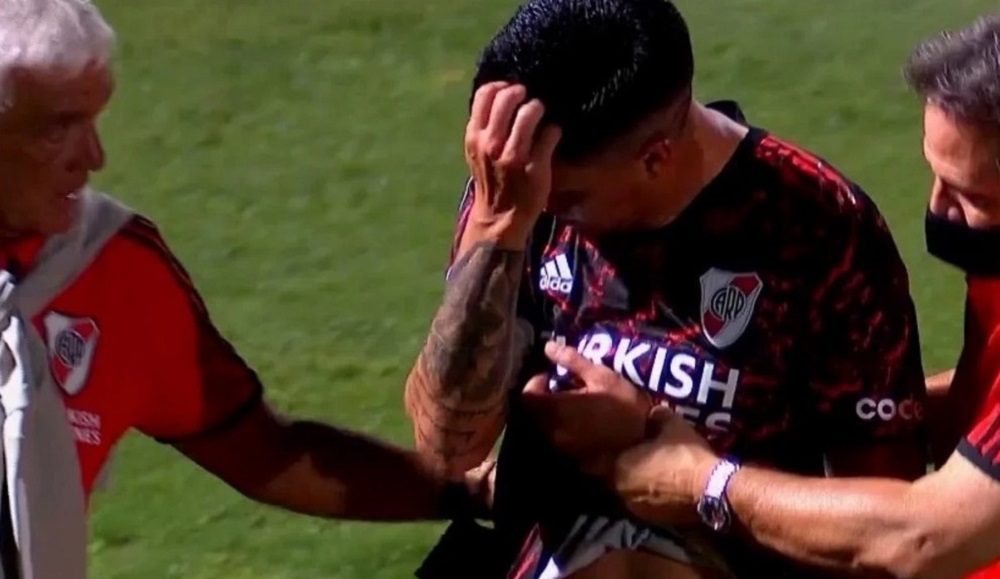 Con visibles muestras de dolor, Pérez fue retirado del campo de juego por los médicos del plantel “millonario” y reemplazado por Bruno Zuculini.