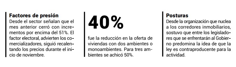 La directiva comentó que, sólo en Capital Federal, la oferta de unidades de tres ambientes en situación de alquiler se achicó más del 50% sólo en el último año. “La reducción en segmentos de viviendas como los monoambientes o los dos ambientes es de, cuanto menos, un 40%. Es una situación insólita. Nunca vista”, afirmó.