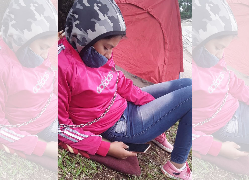 Desde el pasado jueves, una joven se encuentra encadenada a un árbol frente al Palacio de Justicia para reclamar por la libertad de su marido, quien se encuentra detenido desde mayo pasado.