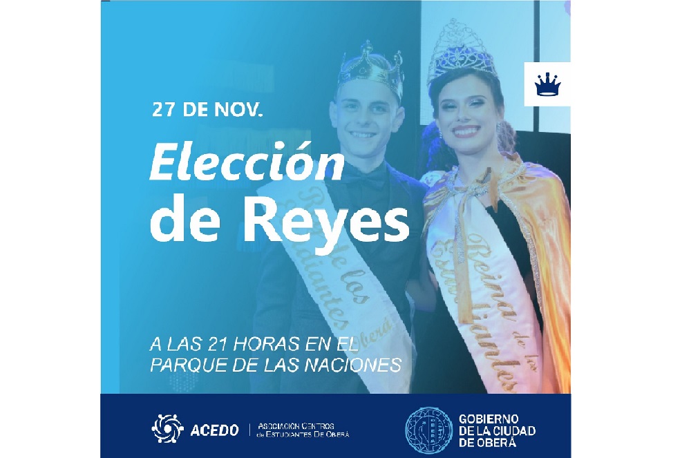 Este sábado 27 de noviembre se realizará la elección de reyes de los estudiantes de Oberá y su epicentro será el escenario mayor del Parque de las Naciones, a partir de las 21 horas.