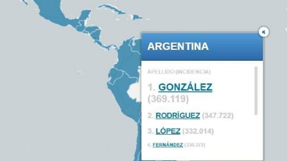 En esa línea, la historia de la Argentina se podría construir a partir de un puñado de apellidos cuyo “top five” lo integran González, Rodríguez, Gómez, Fernández y López. Según un ranking que dio a conocer en 2018 el Registro Nacional de las Personas (RENAPER), el 6,5% de la población (más de tres millones de argentinos) tiene en común alguno de esos apellidos.