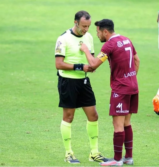 “Te voy a cagar a trompadas, te voy a matar. Si nos dirigís una vez más te voy a matar”, habría sido la amenaza del “Laucha” Acosta a Herrera en el vestuario donde se cambia la terna arbitral, y cuando se disponía a golpearlo intervino la policía para separarlos.