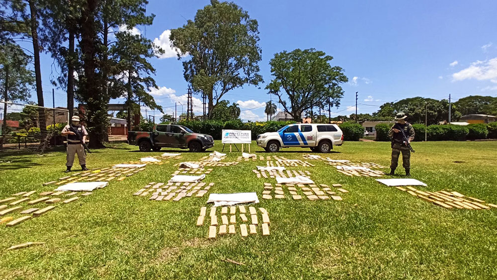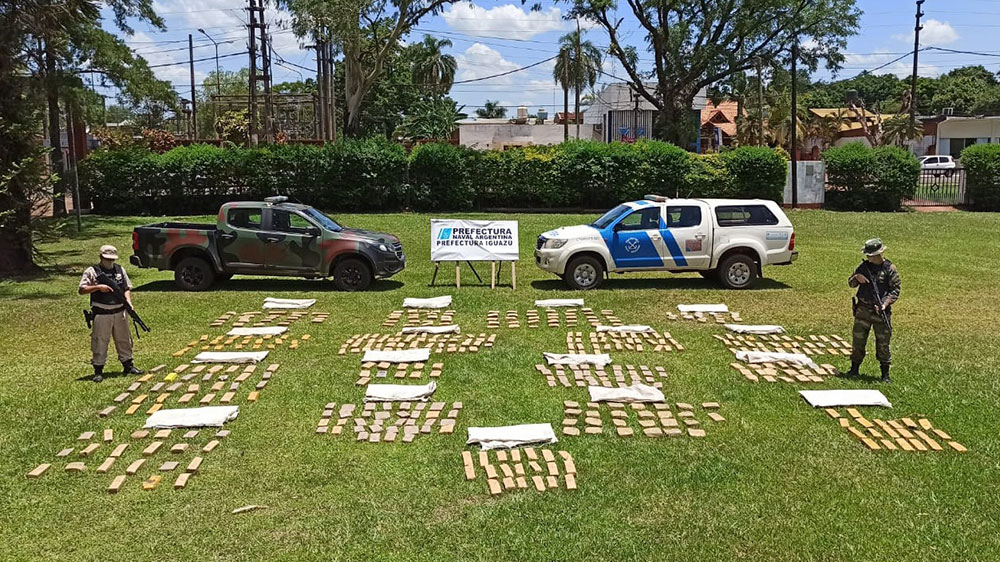 Durante un patrullaje de rutina, este viernes efectivos de la Prefectura Naval Argentina incautaron 328,700 kilogramos de marihuana en el Paraje Istueta de Puerto Iguazú.