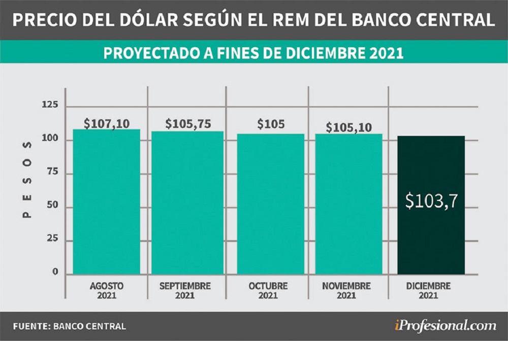 Los agentes del mercado financiero agrupados en el Relevamiento de Expectativas del Mercado (REM) estimaron que el tipo de cambio oficial mayorista alcanzará los 103,70 pesos por dólar a fin de diciembre de este año. Se trata de una baja de 1,40 peso con respecto a las previsiones del REM previo. Esto indica que el mercado no cree que vaya a producirse una disparada del tipo de cambio oficial en las próximas semanas.