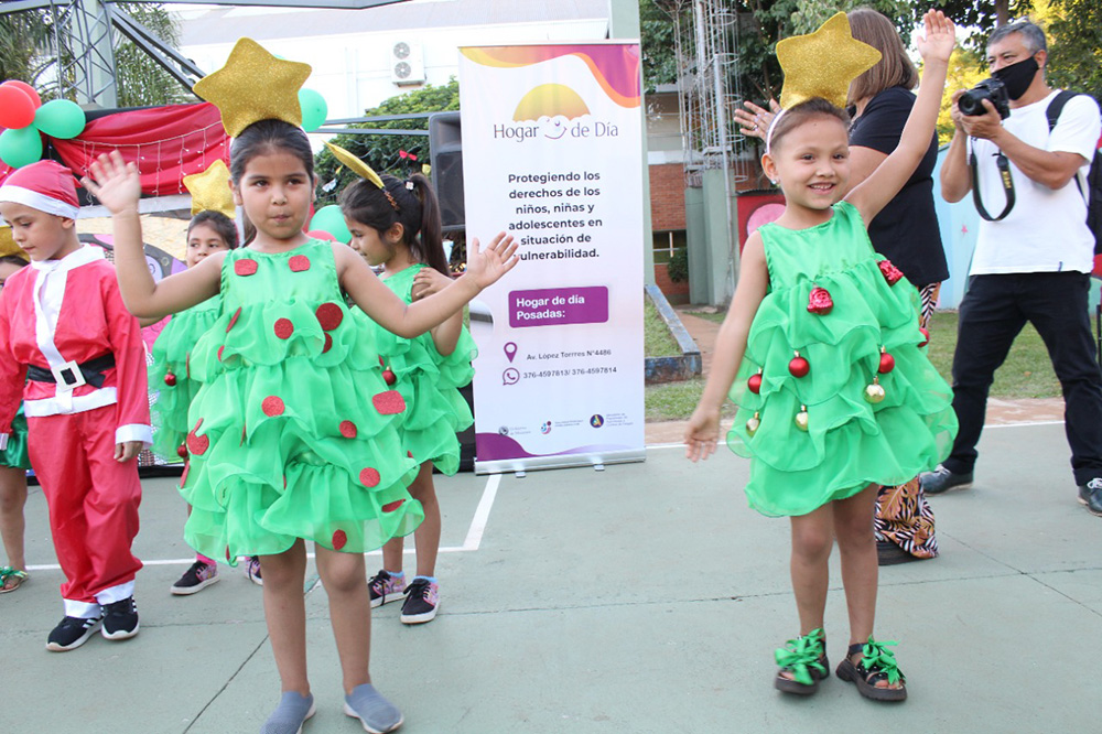 En el Hogar de Día de Posadas, después de un año marcado por la pandemia, los niños, niñas, adolescentes, las familias, el personal y colaboradores, encendieron las luces del Árbol de los Deseos de Navidad.