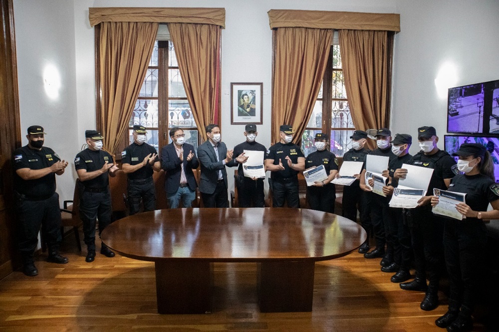 Acompañaron el reconocimiento el subsecretario de Seguridad y Justicia, Ariel Marinoni; el jefe de la Policía de Misiones, Carlos Merlo; y el subjefe Víctor Maj.