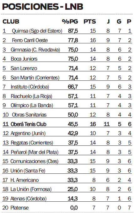 Luego de la caída del pasado lunes frente a Instituto de Córdoba, Oberá Tenis Club quiere recuperar rápidamente el rumbo y hoy tendrá un nuevo escollo. Enfrentará a Ferro, que llegó como escolta de Quimsa, en una nueva fecha de la Liga Nacional de Básquetbol.