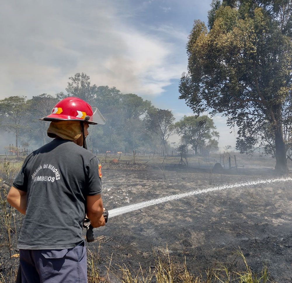 Tanto que la Policía de Misiones controla y combate focos de ígneos en la provincia y pide a los ciudadanos que eviten las quemas de pastizales, plantaciones y/o residuos de cualquier tipo.