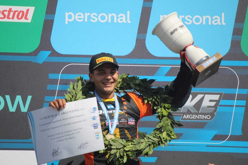 El piloto de Leandro N. Alem, Nahuel Santamaría, se consagró ayer campeón de la categoría R3 Cup dentro del Campeonato Argentino de Superbike.