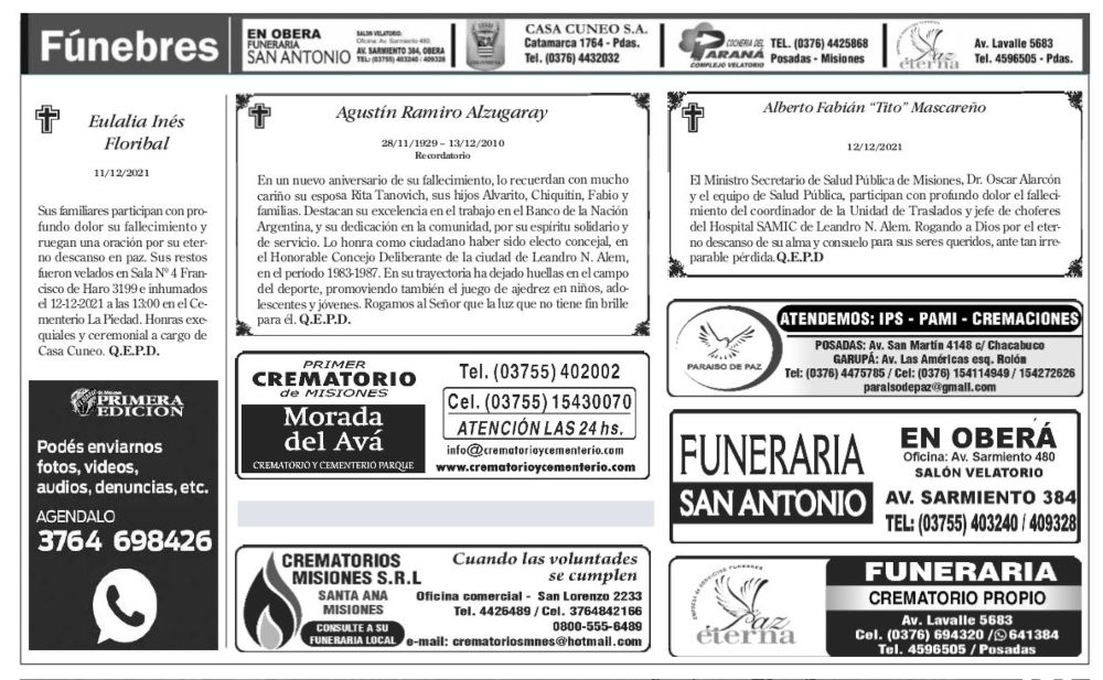 Tags: Fúnebres 13-12-2021
