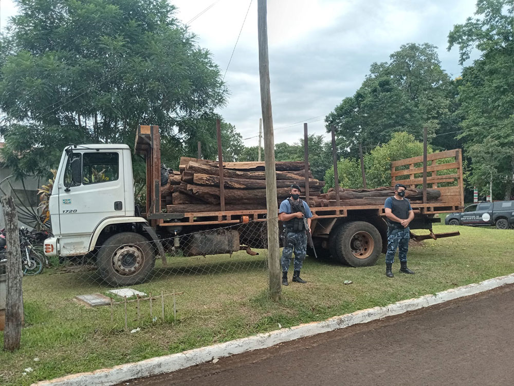 Este lunes por la mañana, personal de la División Guardia Infantería Acaraguá de la UR-XI de Aristóbulo del Valle interceptó un camión Mercedes Benz blanco con una carga de madera nativa cuyo conductor no tenía la documentación correspondiente y, además, la documentación del rodado presentaba irregularidades.