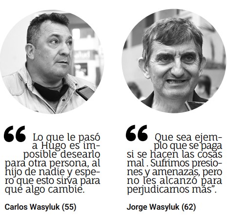 En el mismo sentido opinó Jorge Wasyluk (62), también hermano: “Siento que nos sacamos una mochila muy pesada que la soportamos por demasiado tiempo. Todos los días de debate fue recordar lo que sufrió Hugo. Presenciamos lo que le hicieron y eso duele profundamente. Vimos que la golpiza no le permitía caminar, hablar, quedó inmovilizado hasta que murió”.