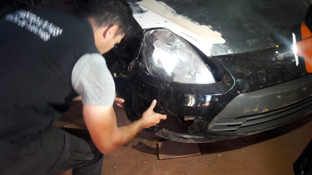 Los investigadores de la UR-VIII comenzaron la búsqueda y supieron que en un taller de chapa y pintura se encontraba un Ford Ka de color negro, que tenía roturas en su parte delantera y podía ser el que la policía buscaba. En diálogo con el dueño del lugar dijo que lo había encontrado estacionado frente al taller y posteriormente un joven se contactó telefónicamente para pedirle que lo reparara y que en la semana pasaría a retirarlo. Esto fue informado al juzgado y luego el magistrado y un secretario judicial junto a la policía, compararon el plástico roto hallado en la ruta y confirmaron que coincidía con la parte faltante en el guardabarro delantero del Ford. Toda esta situación trascendió a los medios y según dijo el joven, al ver que era su vehículo decidió presentarse espontáneamente ante la Justicia.