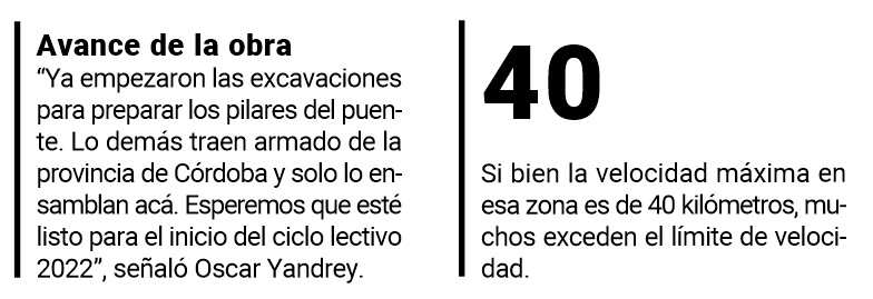 “Lo que nos comentó el ingeniero de la empresa es que se empezaron las excavaciones para preparar los pilares del puente. Lo demás traen armado de la provincia de Córdoba y solo lo ensamblan acá. El plazo de obra es de cuatro meses, así que esperemos que con el inicio del ciclo lectivo del año que viene tenerlo listo para que se pueda utilizar”, subrayó.