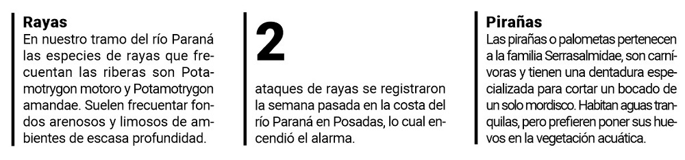 Tras los ataques de rayas que se registraron la semana pasada en las costas del río Paraná, desde el grupo de investigación “Proyecto Biología Pesquera Regional” de la Facultad de Ciencias Exactas, Químicas y Naturales de la Universidad Nacional de Misiones (UNaM) lanzaron una serie de recomendaciones para evitar los ataques de peces en playas urbanas.