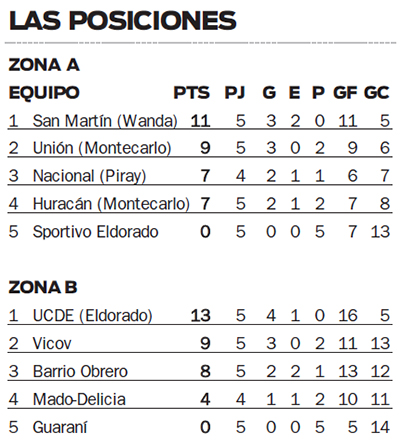 Dicho empate de los de Wanda generó expectativas en Unión de Montecarlo, que con un triunfo ante Sportivo Eldorado achicó la brecha. El Celeste de la Capital de la Orquídea se impuso por 2-1 con goles de José Luis Coronel y Federico Torres (descontó Alan Gonseski para el Albiceleste).