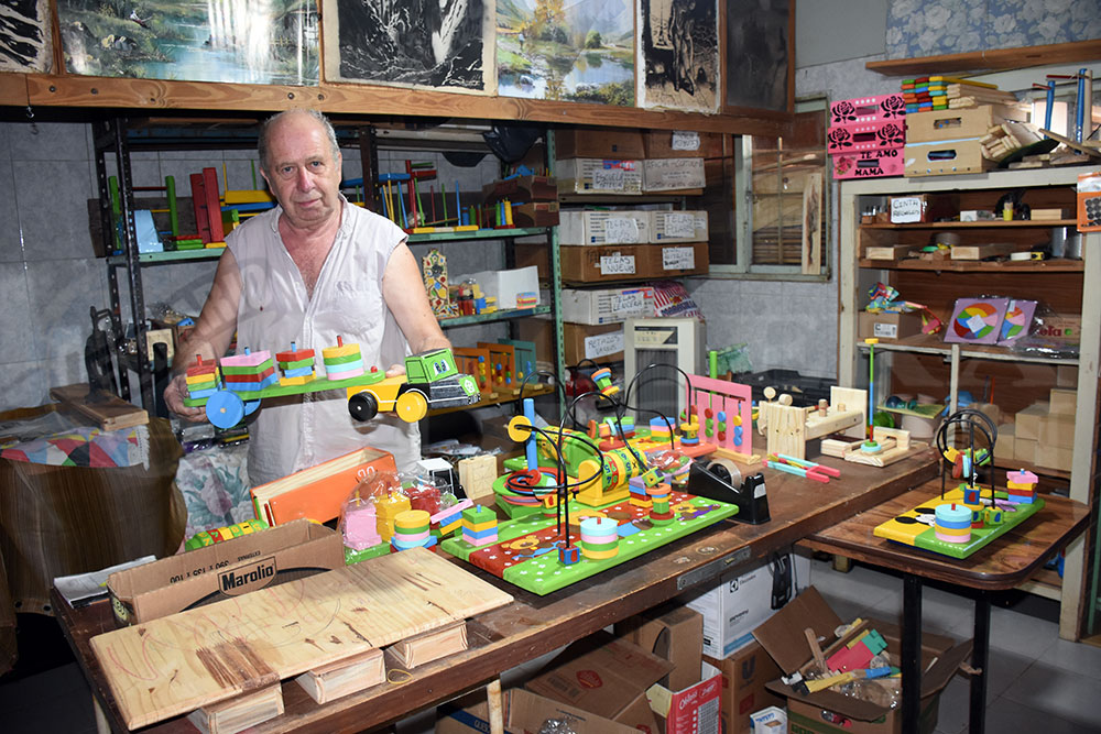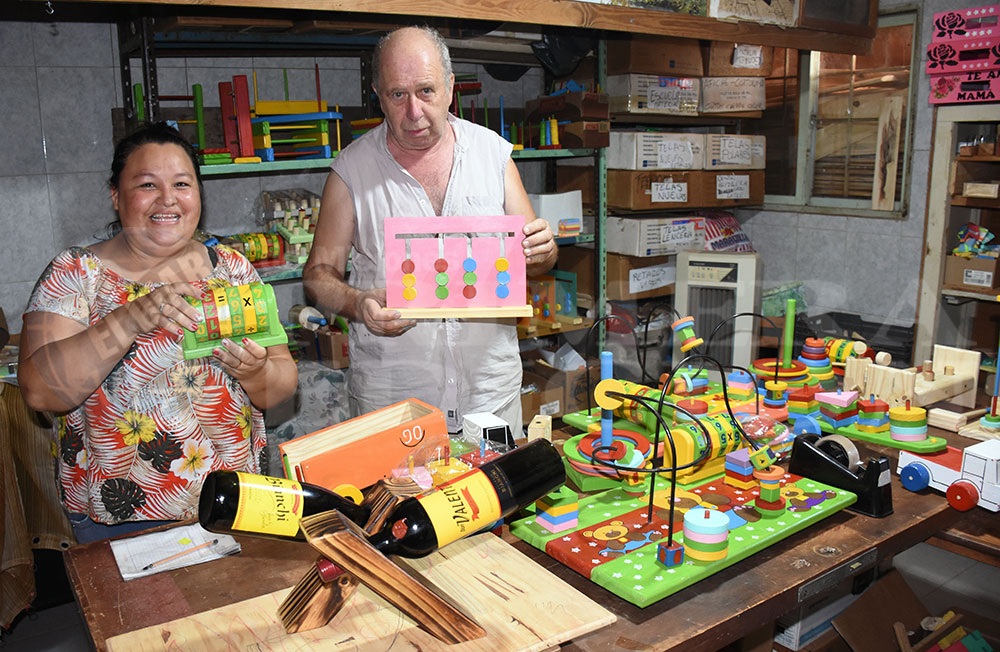 Admitió que su hobby fue siempre la madera. Así que después que se alejó de la gastronomía, a la que se dedicó durante muchos años, “empezamos a fabricar reposeras, mesas, sillas plegables, catre de campaña, y hace cuatro años empezamos con los arbolitos de Navidad giratorios”. Enseguida aparecieron las propuestas de los juguetes didácticos “porque los comenzaron a llevar para los chicos especiales. Por lo general, los profesionales nos sugieren los juegos y nosotros los hacemos. Entonces, nos fuimos volcando a eso y a los arbolitos”.