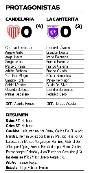 Tras la expulsión de Yonathan Alegre, a los 27’ de la primera parte, Candé jugó gran parte del encuentro con uno menos y no le quedó otra que aguantar. Se aferró al empate y en la suerte de los penales los dos arqueros estuvieron bien, pero prevaleció Lesniczuk para devolver a Candelaria, uno de los históricos de la LPF, a donde se merece.