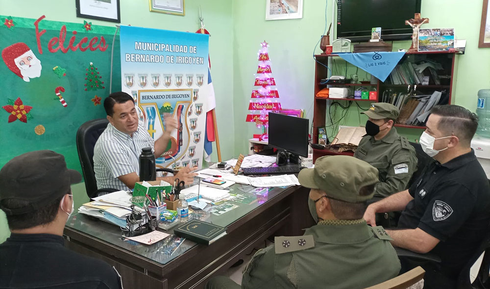 Por esta razón, ayer se realizó una reunión en la Municipalidad de Bernardo de Irigoyen, encabezada por el intendente Guillermo Fernández. Participaron además el jefe del Escuadrón 12 de la Gendarmería Nacional, Comandante Principal Virgilio Martinez; el jefe de la Unidad Regional XII de la Policía de Misiones, Comisario Mayor Leonardo Javier Viera; el director de Comercio Municipal, Juan Mateauda, la asesora legal de la Comuna, Blanca Nuñez, entre otros.