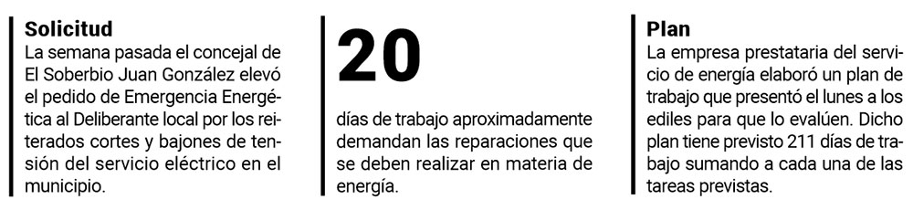 Los vecinos de El Soberbio se cansaron de los cortes, bajones y subidas de la tensión eléctrica y reclamaron al Concejo Deliberante que se ocupe de buscar una solución. El planteo de la emergencia eléctrica que puso en consideración el concejal González, tomó la dimensión que los soberbianos esperaban.