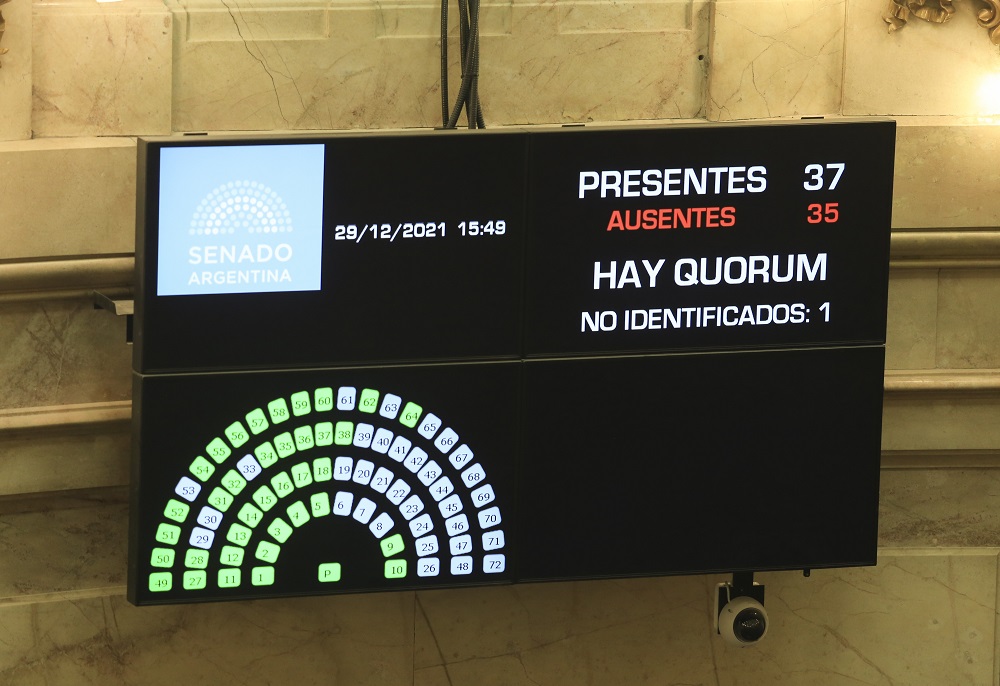 “Sin embargo, hasta las 15:36, seis minutos después del límite dispuesto por el reglamento, sólo se habían identificado 33 senadores, no llegando a cumplir con los 37 requeridos. En definitiva, no se alcanzó el quórum en los términos establecidos por el Reglamento de la Cámara”, señaló el interbloque.