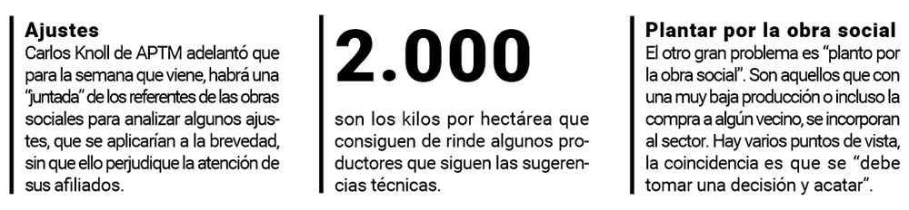 El otro gran problema es “planto por la obra social”. Son aquellos que con una muy baja producción o incluso la compra a algún vecino, se incorporan al rubro al que en verdad no pertenecen. Hay varios puntos de vista, la coincidencia es que se “debe tomar una decisión y se debe acatar”.