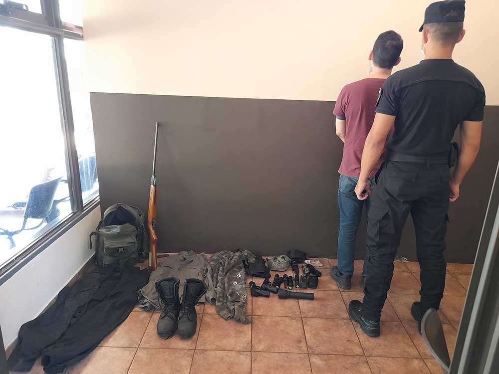 En base a las investigaciones llevadas a cabo y con la orden de allanamiento, los policías finalmente ingresaron al domicilio del acusado. Allí secuestraron el rifle antes mencionado, dos pistolas de aire comprimido, una bolsa con balines de acero, seis linternas tácticas, la ropa con “estilo militar” vistas en el video y otros elementos relacionados. En el mismo contexto, detuvieron a un hombre de 39 años y a un joven de 23 años a fin de esclarecer los hechos.