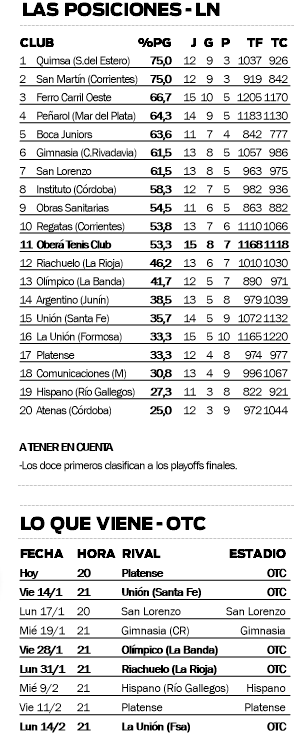 Dos días después de lo previsto, OTC vuelve al ruedo. Después del reinicio fallido por la Liga Nacional ante San Lorenzo, golpeado por los casos de coronavirus, el Celeste retomará el periplo en la máxima categoría nacional hoy por la noche ante Platense, desde las 20 y en el mismísimo Luis Augusto Derna de Oberá.