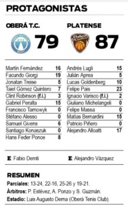 En ese marco, Facu Giorgi tomó la batuta y fue el goleador de OTC en la noche, con 19 puntos, aunque Platense, que viene en racha positiva, tuvo un desempeño colectivo formidable: Felipe Pais hizo 23, Ale Alloati marcó 17 y tanto Bernardini como Lugli hicieron 15.