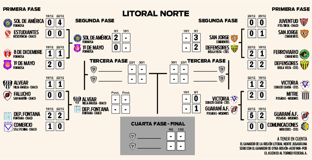 Si bien resta la confirmación por parte del Consejo Federal de AFA, todo indica que Guaraní Antonio Franco recibirá a Victoria de Curuzú Cuatiá el domingo venidero desde las 18 en Villa Sarita, por la revancha de los cuartos de final de la Región Litoral Norte.