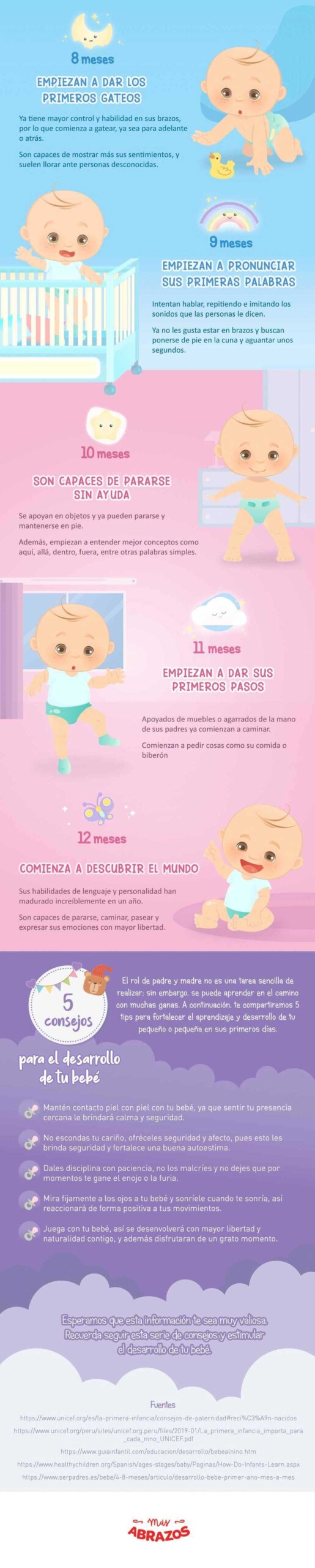 Sus habilidades de lenguaje, físicas y de personalidad han madurado mucho durante un año. Son capaces de pararse, caminar y expresar mejor sus emociones.