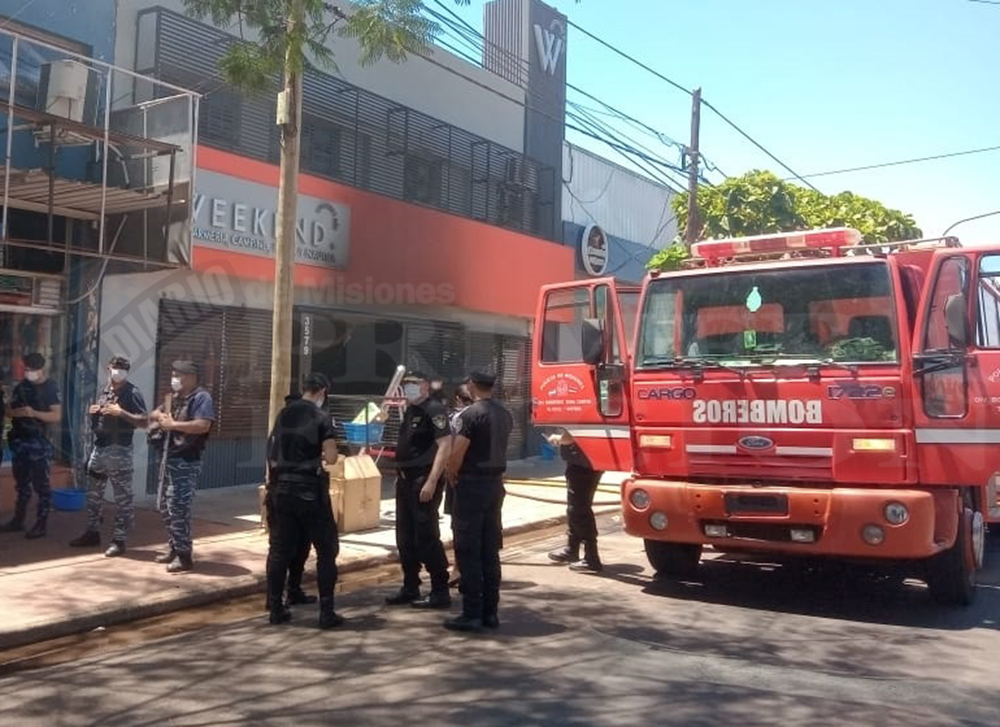 Este mediodía se desató un principio de incendio en “Weekend”, un comercio de muchos años de tradición y que se dedica a la venta de armas, artículos de pesca y equipamiento de campamento, ubicado sobre la avenida Uruguay y calle Ambrosetti de Posadas, frente a la comisaría Tercera.