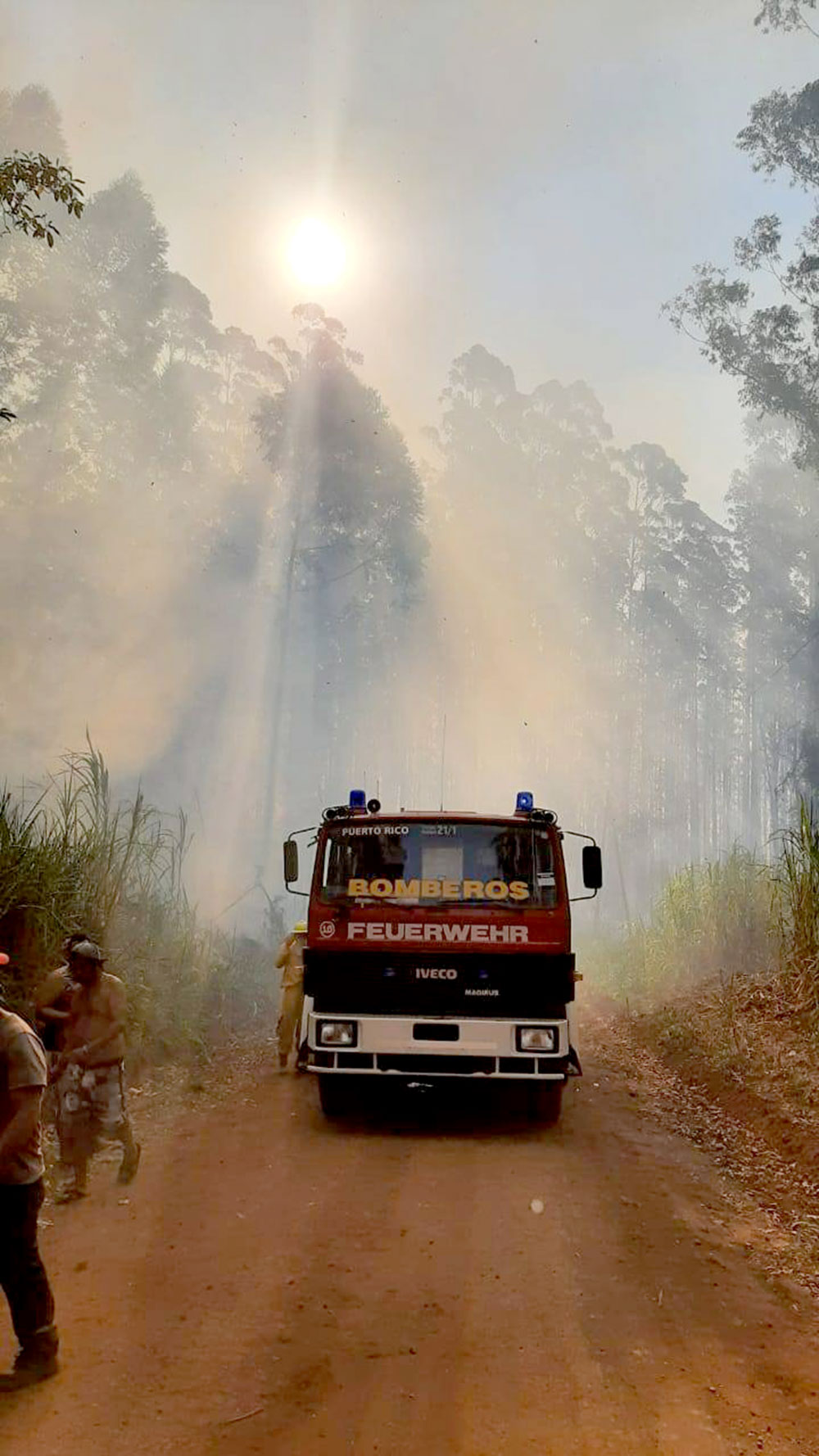 En una comunicación telefónica con el intendente de Capioví, Alejandro Arnhold con FM 89.3 Santa María de las Misiones, desde el Paraje Oro Verde, indicó que el combate del fuego se vuelve difícil porque “es una zona donde hay mucha producción de yerba mate, producción forestal de pino y eucaliptos, entonces el fuego se está esparciendo rápidamente por toda la zona costera”.
