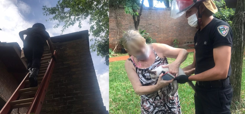 Efectivos de la División Bomberos de Oberá acudieron esta tarde a una vivienda ubicada en calle San Luis de la ciudad de Oberá para rescatar a un gatito.