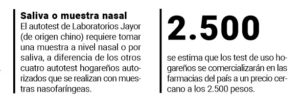 Este último aprobado es el test Immunobio, de Laboratorios Jayor, que se realiza en secreciones nasales y de saliva. Según su fabricante, servirá para detectar tanto la variante Delta como la Ómicron. Estiman que este nuevo instrumento de diagnóstico estará disponible en droguerías y farmacias de todo el país a partir del 20 de enero. El 5 de enero, el ente regulador había aprobado otras cuatro pruebas de autodiagnóstico: Panbio COVID-19 Antigen Self-Test, SARS-CoV-2 Antigen Self Test Nasal, SARS-CoV-2 Antigen Rapid Test, WL Check SARS-CoV-2 Ag Self Testing. De los cinco autotest aprobados en el país, cuatro son de laboratorios extranjeros y uno de ellos- laboratorio Weiner- es nacional.
