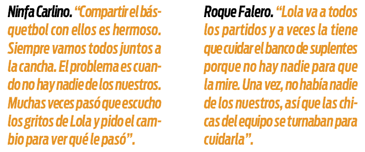 “Para mi el básquet es una pasión, algo que amo, porque así hay que sentirlo. Encima ahora lo comparto con él y con Lola. Y todo eso es una sensación inexplicable”, resumió la mujer sobre lo que significa la naranja en su vida. “El básquetbol es mi vida, casi perdí mi casa por este deporte. Los dos vivimos para el básquetbol”, agregó Roque.
