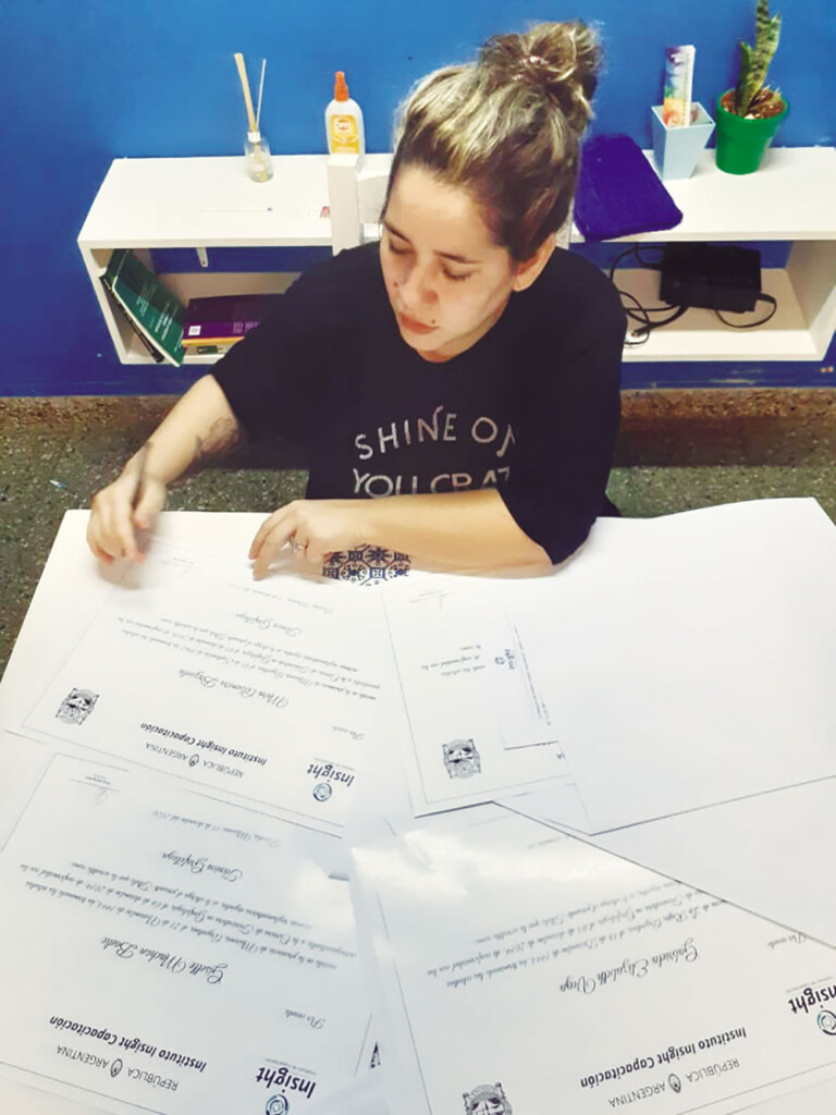 La especialista trabaja además en una consultora que realiza selección de personal mediante la escritura. Dice, “me encargo de elaborar perfiles de personalidades para saber en qué áreas son buenos los aspirantes o en qué cuestiones tienen más aptitudes, esto junto con el coaching me posibilita potenciar esos espacios de aprendizaje”.