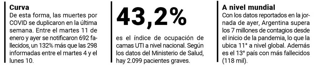 “Cada vez hay más pacientes, es una alarma”, añadió el médico y dijo que “no estamos viviendo una catástrofe sanitaria gracias a la exitosa campaña de vacunación”. Fue en ese marco que pidió avanzar en la inmunización de la población porque “aún es insuficiente”.