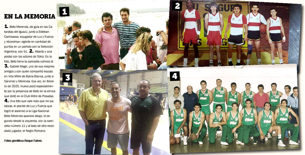 En efecto, en razón de sus condiciones, Merenda fue reclutado cuando era aún un adolescente y se mudó a la capital del básquetbol, donde compartió equipo con gigantes como Hernán Montenegro o Huevo Sánchez. “Por eso, años atrás, cuando Huevo vino a Posadas para dar una clínica, pidió especialmente que Beto esté ahí con él”, recordó Falero.