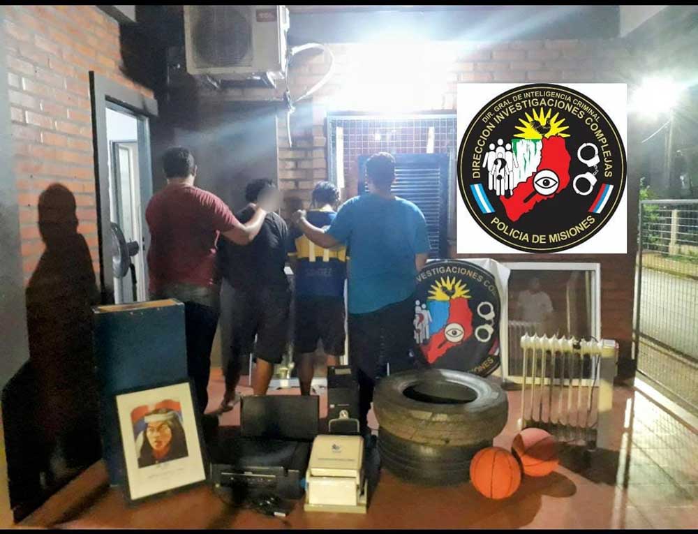 Tras las tareas investigativas realizadas por los sabuesos en la zona de Villa Cariño, dieron con los sospechosos quienes ofrecían a la venta objetos con similares características a los buscados. Los detuvieron y secuestraron una computadora, un caloventor, un cuadro y otras pertenecías tomadas ilícitamente.