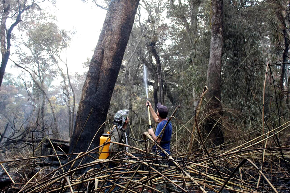 “Ayer (por el martes) pudimos decir que tenemos todos los focos y frentes controlados, vamos a mantener por 20 días la guardia de cenizas, hay muchos árboles que siguen incendiados por dentro y también las raíces que suelen tener muchos metros de longitud, entonces la guardia de cenizas irá revisando los puntos y apagando el fuego para que no vuelvan a convertirse en focos de incendio”, explicó el decano de la Facultad de Ciencias Forestales, Héctor Fabián Romero.