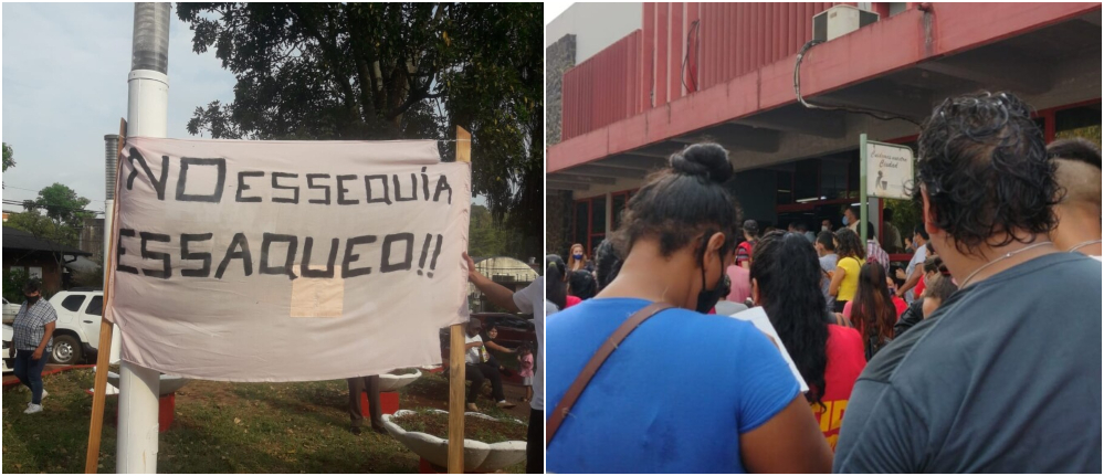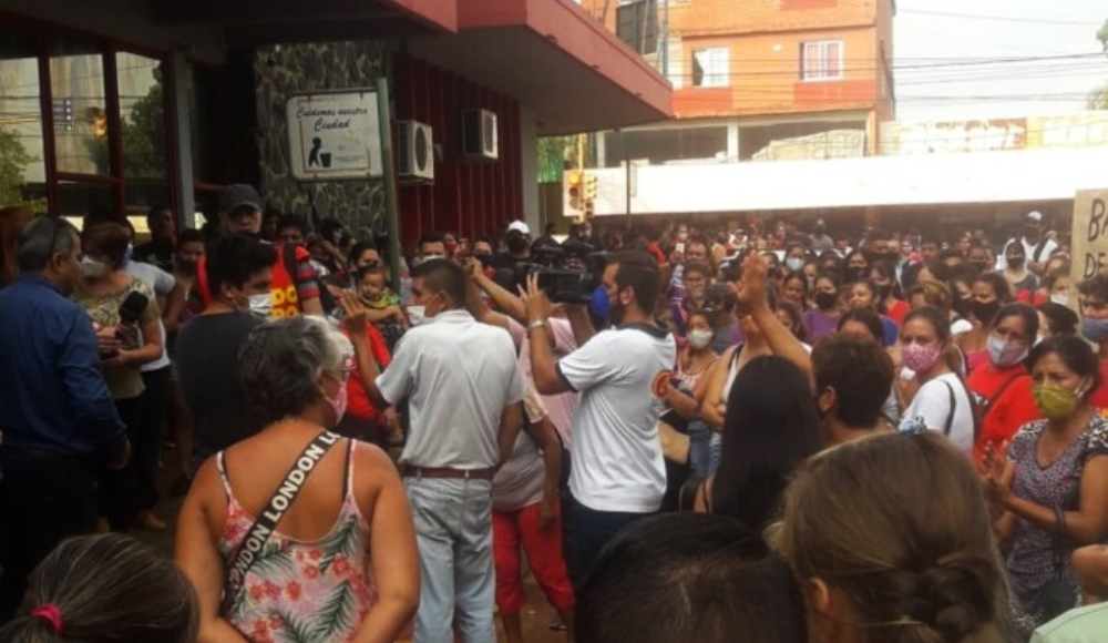 Un gran número de personas del barrio Los Lapachos de Eldorado se manifiestan este jueves frente a la CEEL, en reclamo de respuestas ante la falta de servicios básicos en sus hogares desde el sábado.