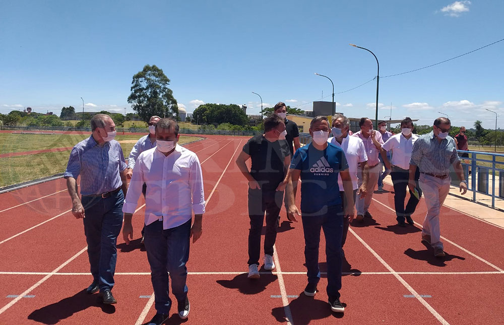 En la visita al CePARD, donde los recibió el ministro de Deportes Héctor Corti, el Gobernador mostró la excelente pista de atletismo, así como las canchas de tenis y el microestadio cubierto.