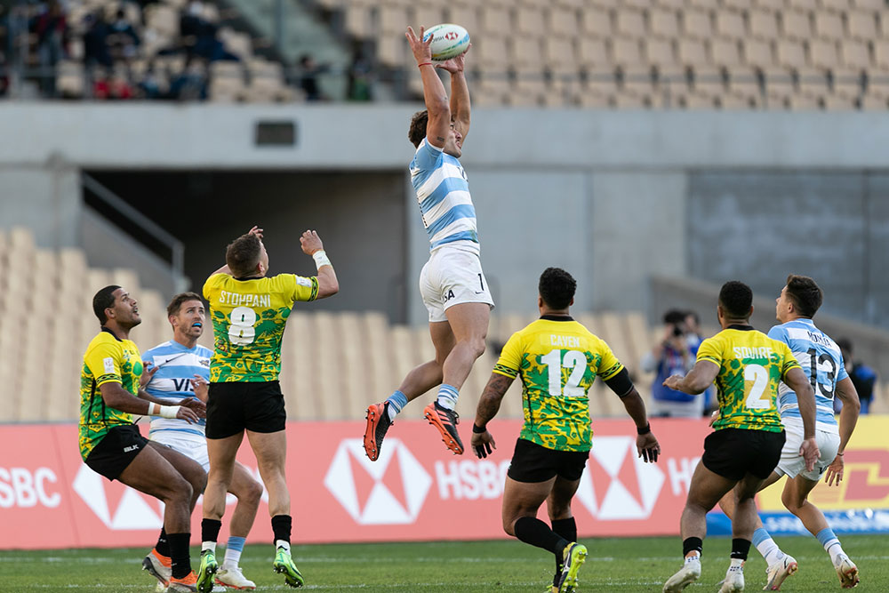 El cotejo se jugó en el estadio de La Cartuja y Argentina, medalla de bronce en los Juegos Olímpicos de Tokio en agosto y segunda en el ranking de la World Rugby Sevens Series, logró sus puntos con un try penal, tries de Marcos Moneta, Santiago Álvarez, Gastón Revol y Joaquín de la Vega más tres conversiones de Felipe Del Mestre.