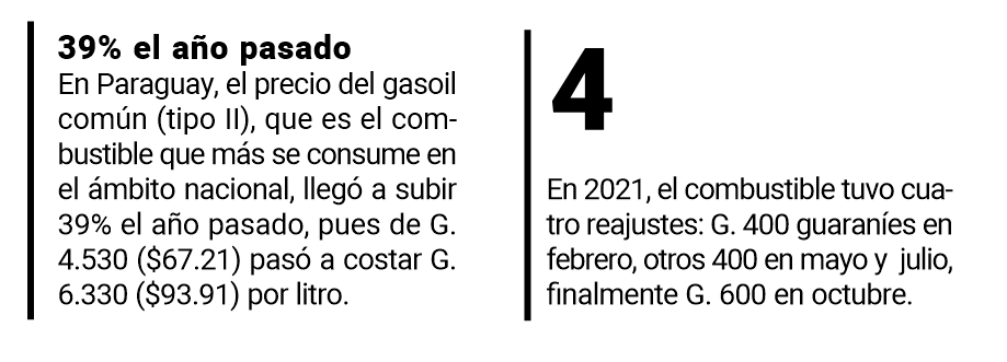 ASUNCIÓN, Paraguay (Medios digitales). El panorama de los precios de los combustibles es desalentador para los consumidores con un nuevo aumento de hasta G. 600 (casi $9) el litro de naftas y del gasoil que comenzó a regir ayer.
