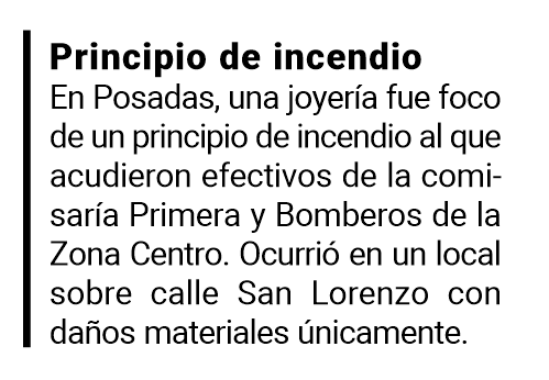 Por otra parte, en Garupá, un joven de 24 años perdió su vivienda a raíz de un incendio que se provocó por un descuido momentos en que cocinaba alimentos en una cocina a leña.