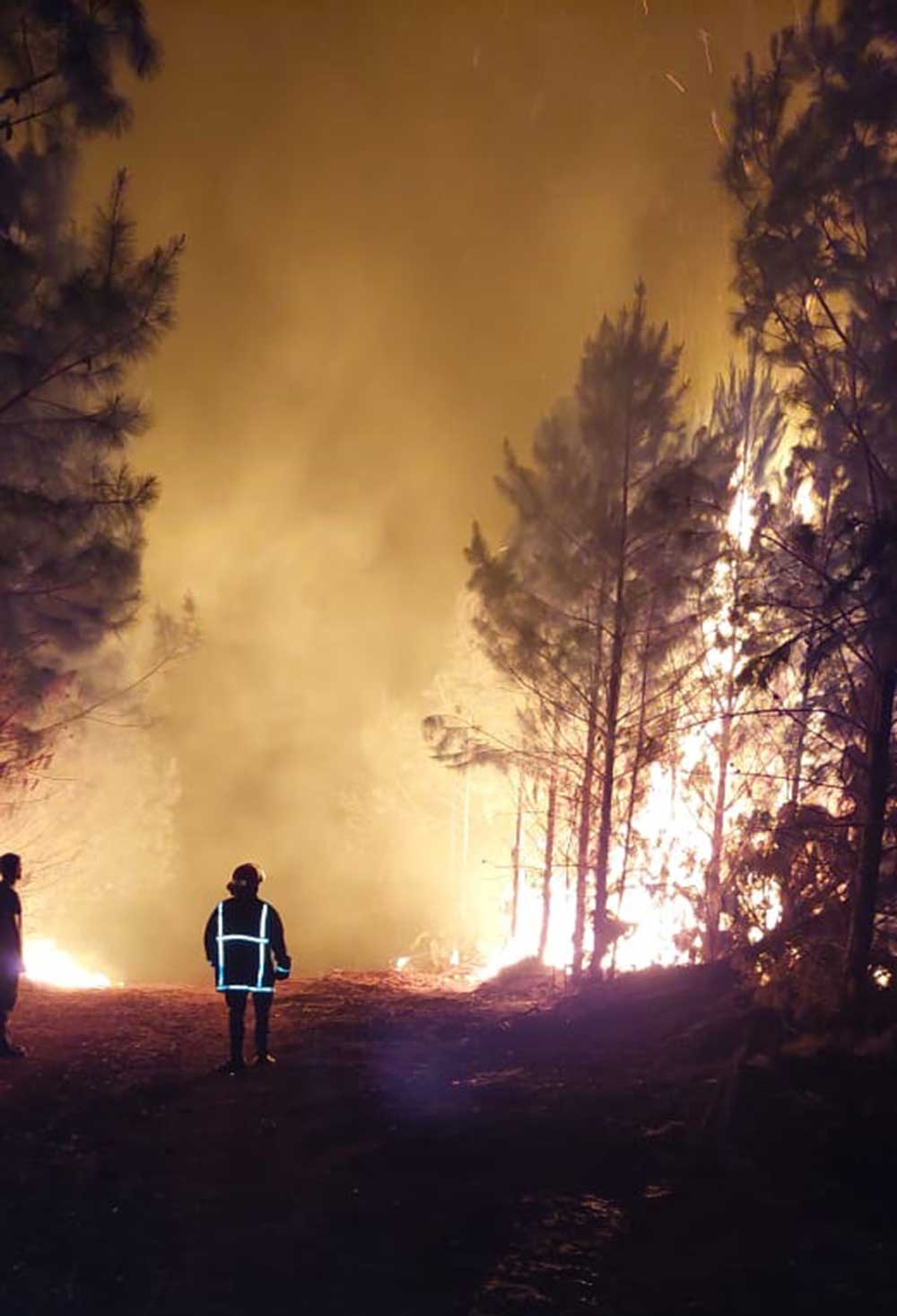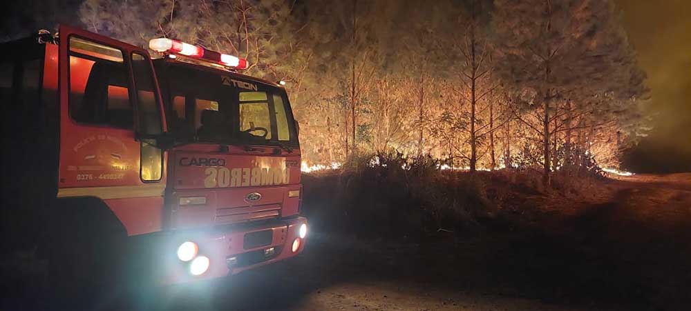 Tras la alerta, de inmediato acudió al lugar la división Bomberos de la policía de Jardín América, que se encuentra a aproximadamente 32 kilómetros del pinar, para trabajar en la zona.