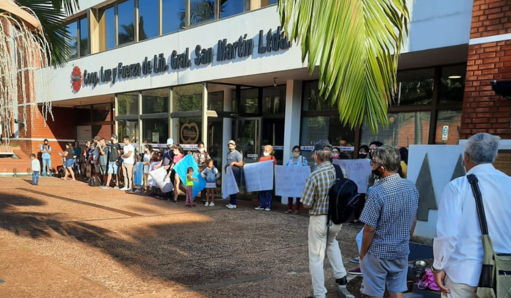 Un grupo de vecinos autoconvocados se reunieron esta mañana frente a la Cooperativa de Luz y Fuerza, ubicada en la avenida Carlos Culmey de la localidad de Puerto Rico.