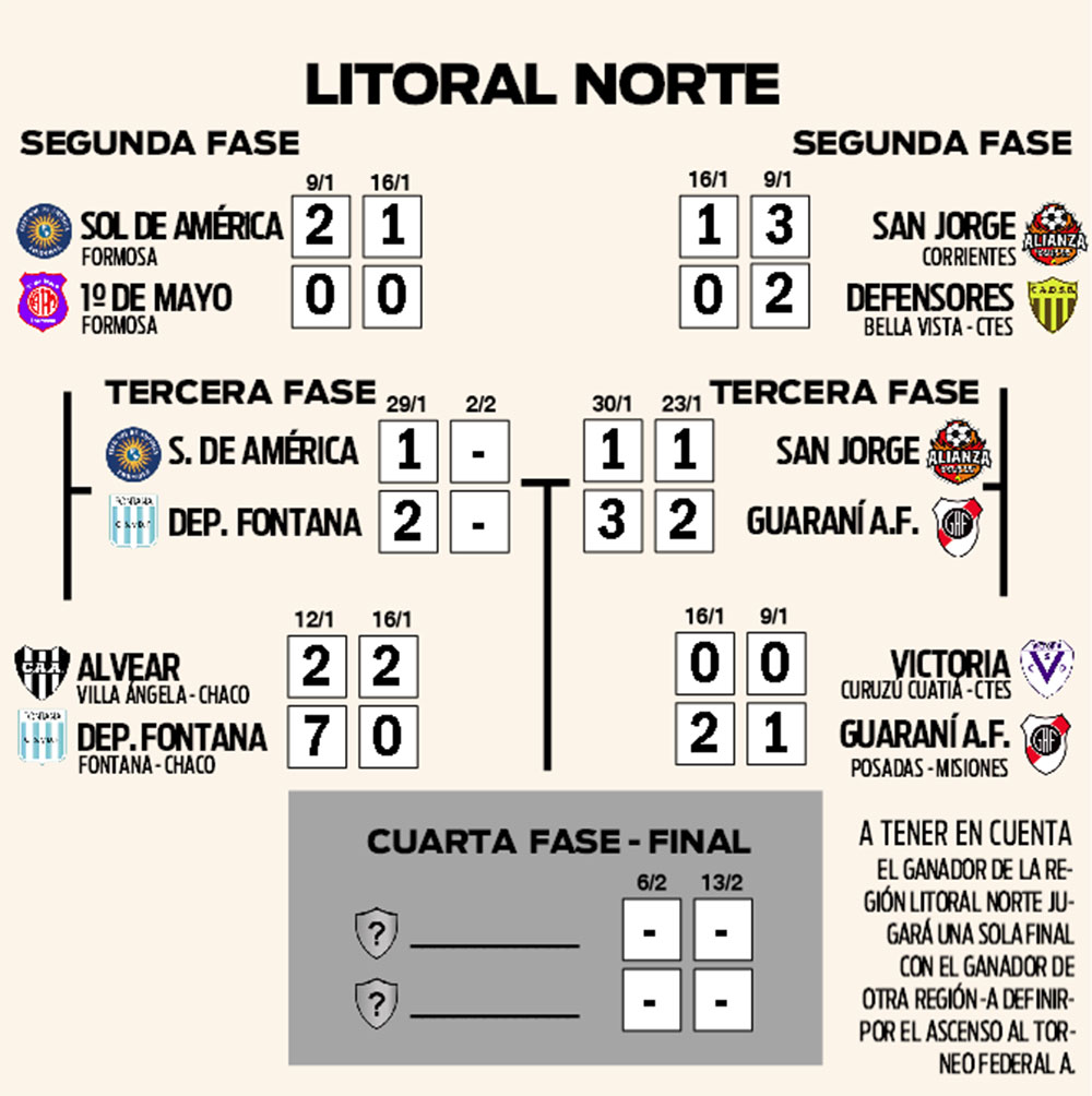 ¿Quien será el rival de Guaraní en la final de la región? Todavía no se sabe. Habrá que esperar hasta mañana cuando jueguen la revancha Sol de América de Formosa y Fontana de Resistencia, en cancha del primero. En el primer juego se impusieron los chaqueños 2-1.
