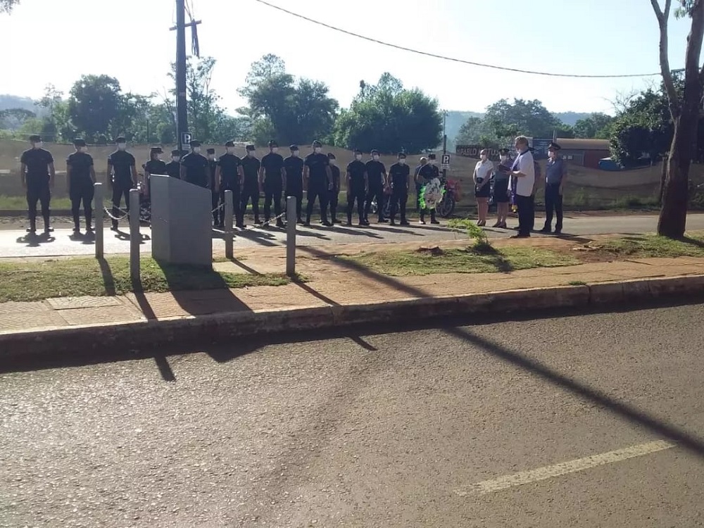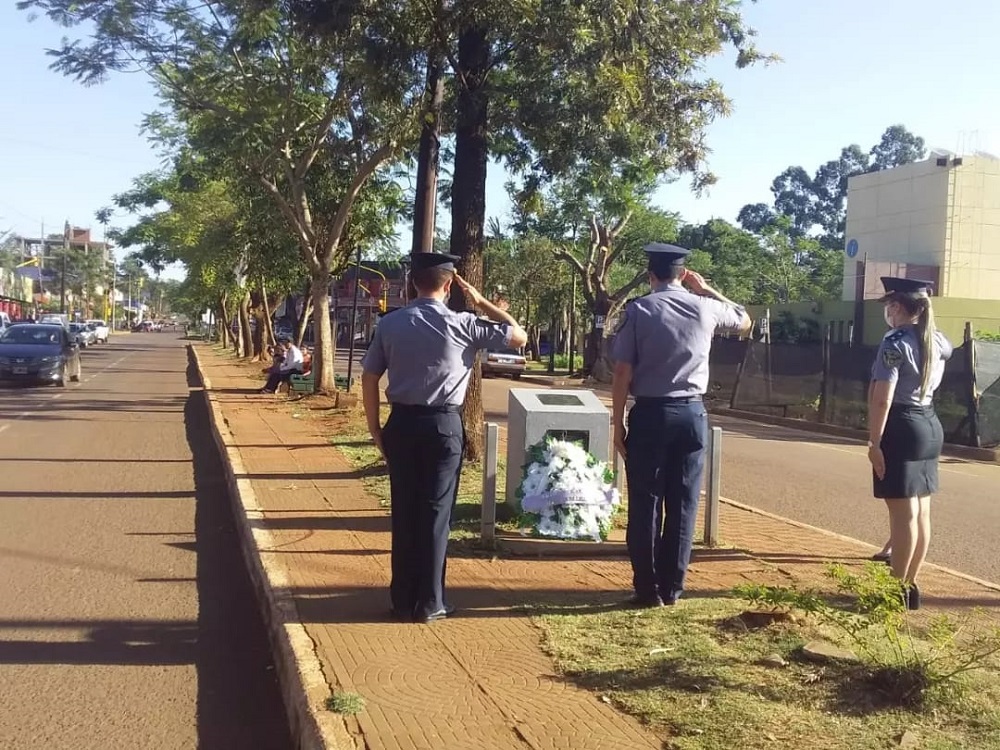 Acompañaron la entrega floral el personal policial de la Unidad Regional VIII de San Vicente, amigos, familiares, autoridades locales y el cura párroco Adán Klinikowski, quien hizo una ceremonia espiritual donde se realizó un minuto de silencio.